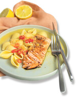 Zutaten (für zwei Personen) 400g frischer Lachs, 250 ml Fisch- oder Gemüsefond, 1 Schuss Weißwein, 1 Zitrone (verzehrbare Schale), 1 Chilischote, 1 Schalotte, etwas Olivenöl, etwas Salz, Pfeffer und Zucker Zubereitung Die Schalotte und die Chilischote klein schneiden und die Schale der Zitrone abreiben. Die Schalotte mit der Chili in etwas Olivenöl andünsten und mit Weißwein, dem Saft sowie der Schale der Zitrone und dem Fond ablöschen. Mit Salz, Pfeffer und etwas Zucker abschmecken. Je länger diese Soße kocht, desto cremiger wird sie. Man kann die Soße auch gut vorbereiten und aufwärmen. Den Lachs mit Salz und Pfeffer würzen und in einer Pfanne für 15 Minuten bei mittlerer Temperatur auf der Hautseite anbraten. Anschließend umdrehen und...