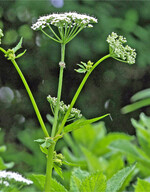 Der Giersch (Aegopodium podagraria) ist leicht an seinen Blättern erkennbar. Sie haben dreieckige Blattstiele und dreizählige Blätter, bei denen die seitlichen Fiederblättchen teils nicht ganz getrennt sind. Ein plattgedrücktes Gierschblatt bildet einen Halbkreis und entwickelt beim Zerreiben einen feinen Petersilienduft. An schattigen Stellen bildet die nahrhafte Pflanze durch Wurzelausläufer ganze Bestände, was die Ernte sehr leicht macht. Ihre Blätter können Sie prima als Petersilienersatz verwenden, als Wildgemüse für eine Quiche, als Pesto, im Salat und zu Spinat oder als Würzkraut zu Kartoffeln, in Kräuterbutter oder Suppen. Lecker schmeckt auch ein Gierschtrunk (siehe Rezept) und die Blüten sind essbare Dekoration. | Monika Wurft