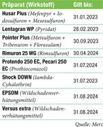 Das Bundesamt für Verbraucherschutz und Lebensmittelsicherheit hat die Zulassung von Pflanzenschutzmitteln vorerst verlängert, deren Zulassung durch Zeitablauf endete. | Dr. Friedrich Merz, Pflanzenschutzdienst am Regierungspräsidium Stuttgart