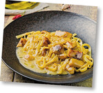 Zutaten für 4 Personen 500 g Bandnudeln | 500 g Steinpilze | 2 Schalotten 1 Knoblauchzehe | 1 Zitrone 125 g Sahne | 100 g Milch 2 EL Crème fraîche | etwas Olivenöl zum Anbraten | Salz und Pfeffer Zubereitung Steinpilze putzen und in Scheiben schneiden, Schalotten und Knoblauch schälen und fein hacken. Den Saft einer Zitrone auspressen. Nudeln nach Packungsanweisung kochen. Die Pilze im heißen Öl kurz und kräftig anbraten und wieder aus der Pfanne nehmen, Schalotten und Knoblauch kurz in der Pfanne andünsten und mit dem Zitronensaft ablöschen. Sahne, Milch und Crème fraîche unterrühren. Die Pilze wieder zugeben und 1 bis 2 Minuten ziehen lassen. Dann unter die frisch gekochte Pasta heben. Mit Salz und Pfeffer abschmecken.