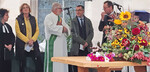 Der Landesbauernverband (LBV) wirkte auch dieses Jahr wieder an dem traditionellen Erntedankgottesdienst der Stuttgarter Marktbeschicker vor der Stiftskirche mit. Mit dabei (v. l.): Pfarrerin Monika Renner, LBV-Vizepräsidentin Rowitha Geyer-Fäßler, Diakon Uwe Renz, Bundeslandwirtschaftsminister Cem Özdemir und Thomas Lehmann von der Märkte Stuttgart GmbH.