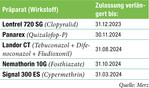 Das Bundesamt für Verbraucherschutz und Lebensmittelsicherheit hat die Zulassung von Pflanzenschutzmitteln, deren Zulassung durch Zeitablauf endete, verlängert. Die Verlängerungen werden bis zur endgültigen Entscheidung über eine erneute Zulassung erteilt.