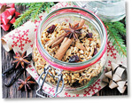 Zutaten 80 g Walnüsse 80 g Haselnüsse 40 g Kürbiskerne 40 g Sonnenblumenkerne 90 g Mandelstifte 150 g Haferflocken 3 TL Zimt 1 bis 2 TL Spekulatiusgewürz ½ bis 1 TL Muskat 1 Prise Salz 2 EL Rapsöl 4 EL Honig evtl. 1 EL Leinsamen Zubereitung Nüsse grob hacken, Öl erwärmen, Honig zugeben, alle Zutaten zugeben und gut mischen bis alles sehr gut verteilt ist. Backofen vorheizen auf 170 °C Ober-/Unterhitze, das Backblech mit Backpapier belegen und die Mischung darauf streichen, etwa 15 Minuten im Backofen lassen und dabei ein- bis zweimal „umrühren". Abgekühlt in Schraubgläser füllen, beschriften und dekorieren. Tipp: Wer möchte, kann noch Rosinen oder getrocknete Cranberrys vor dem Abfüllen unter das Müsli mischen. Spekulatiusgewürz können...