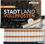 Stadt Land Fluss kennt wohl wirklich jeder. Stadt, Land, Fluss, Beruf, Schauspieler etc. gilt es in einer vorgegebenen Zeit zu einem zuvor festgelegten Buchstaben aufzuschreiben. Wer die meisten Begriffe hat – und die auch noch möglichst als Einziger in der Runde –, der bekommt die meisten Punkte und hat gewonnen. Genau so funktioniert auch „Stadt Land Vollpfosten – Intelligenz ist realtiv" von Denkriesen. Aber spätestens wenn bei der Auswertung der aktuellen Runde jemand ruft: „Klobürste ist doch auch ein Haushaltsgerät!" (exakt so geschehen auf unserer Redaktions-Weihnachtfeier), dann sind lautstarke Diskussionen mit ordentlich Potenzial für Lacher garantiert. Auf einem DIN A3-Bogen können insgesamt 16 Runden Stadt Land Vollpfosten...