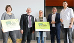 Für die Landesaktion Gläserne Produktion 2022 zeichnete der Reutlinger Landrat Dr. Ulrich Fiedler (2. v. r.) den Betrieb Münch (rechts) aus Hochberg aus. Neue Schilder für Lernort Bauernhof-Betriebe im Kreis übergaben Fiedler und der Vorsitzende des Kreisbauernverbandes Reutlingen, Gebhard Aierstock, an Carmen Möck (l.) vom Albwiesenhof in Sonnenbühl sowie an Hanna Neuscheler vom Schönbuchhof in Walddorfhäslach. Nicht auf dem Bild sind der Bioland-Gärtnerhof Werner Sonnenbühl sowie Daniel und Sabine Birkmayer aus Zwiefalten-Baach. | bor