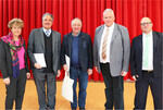 Ehrungen beim KBV Biberach-Sigmaringen: Für sein langjähriges Engagement im Berufsstand erhielt Josef Rief, MdB, (2.v.l.) von Kreisobmann Karl Endriß im Namen von Präsident Joachim Rukwied die Ehrennadel des Landesbauernverbandes. Für 20 Jahre Tätigkeit als Ortsobmann wurde aus dem Gebiet Biberach Hans Schließer (Mitte) aus Wain ausgezeichnet. Nicht auf dem Bild sind aus dem Sigmaringer Gebiet Karl Fischer, Hausen a. A. und Frank Mors, Storzingen. Es gratulierten die stellvertretende KBV-Vorsitzende Martina Magg-Riedesser und Geschäftsführer Niklas Kreeb (rechts). | bor
