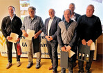 Für 25 Jahre Tätigkeit als Ortsobmann wurden aus Ehingen-VolkersheimJosef Jerg (2.v. l.) und aus Hüttisheim-Humlangen Karl Sedelmaier (r.)ausgezeichnet. Für 20 Jahre Tätigkeit als Ortsobmann wurde aus Setzingen Hans Häge (2. v. r.) und für zehn Jahre Tätigkeit als Ortsobmann Rainer Preiß aus Asselfingen (links) ausgezeichnet. Ebenfalls ausgezeichnet, aber nicht anwesend: Für 55 Jahre Tätigkeit als Ortsobmann wurde aus Dornstadt-Temmenhausen Otto Erhardt und für 45 jährige Tätigkeit in Staig Weinstetten Josef Wahl ausgezeichnet. Seit 40 Jahren ist Gerhard Honold in Berghülen-Treffensbuch und Eberhard Lenz in Lonsee Obmann. Für 25 Jahre Tätigkeit als Ortsobmann wurde aus Blaustein-Wippingen Helmut Zimmermann ausgezeichnet. Für 10 Jahre...
