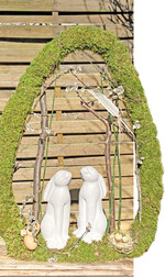 Dieses Osterei ist groß, wirklich groß. Und wird so zum Blickpunkt Ihres Zuhauses. Benötigt werden: Hasendraht in der Breite von 50 Zentimetern, Lappenmoos, Hasel- oder Weidenruten, Wickeldraht (grün lackiert), Dekohasen, Trockensteckschwamm, eine Holzlatte, Schrauben, Holzbrettchen, Äste, Weidenkätzchen, Federn, Eier und Deko. Gestartet wird mit dem Unterbau . Dieser wird aus Hasendraht hergestellt. Bei einem XXL-Ei mit einer Höhe von zirka 70 bis 80 Zentimetern rollt man ungefähr zwei Meter Draht ab. Dieser wird zu einer langen Rolle mit zirka zehn Zentimeter Durchmesser zusammengerollt. Bei Eiern dieser Größe empfiehlt es sich, frische Haselruten oder Weidenzweige mit einzurollen oder sie anschließend in die Mitte der langen Rolle zu...