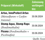 Das BVL hat die Zulassung von Pflanzenschutzmitteln, deren Zulassung durch Zeitablauf endete, verlängert. Die Zulassungsverlängerungen werden bis zur endgültigen Entscheidung über eine erneute Zulassung erteilt.