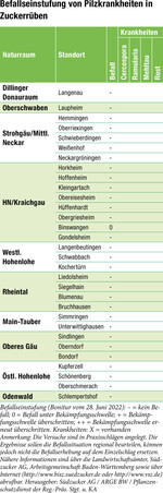 Für Cercospora beticola sind feuchtwarme Bedingungen um die 25 °C und eine relative Luftfeuchte von 90 Prozent ideal. Mit deutlich über 25¿°C und einer relativen Luftfeuchte von etwa 40 Prozent tagsüber waren die Bedingungen für Cercospora nicht gut. Aufgrund der folgenden veränderten Temperaturen und dem teilweise regionalen Niederschlag sollte ein eventueller Cercospora-Befall im Auge behalten werden. Diese Bedingungen haben am Standort Binswangen erste Flecken noch unter der Schadschwelle zur Bonitur gebracht. Cercospora – ja oder nein? Gerade zu Befallsbeginn fällt es auf den ersten Blick schwer einzuordnen, durch welchen Erreger der Blattfleck verursacht wurde. Neben einem Vergrößerungsglas kann es hilfreich sein, das befallene Blatt...