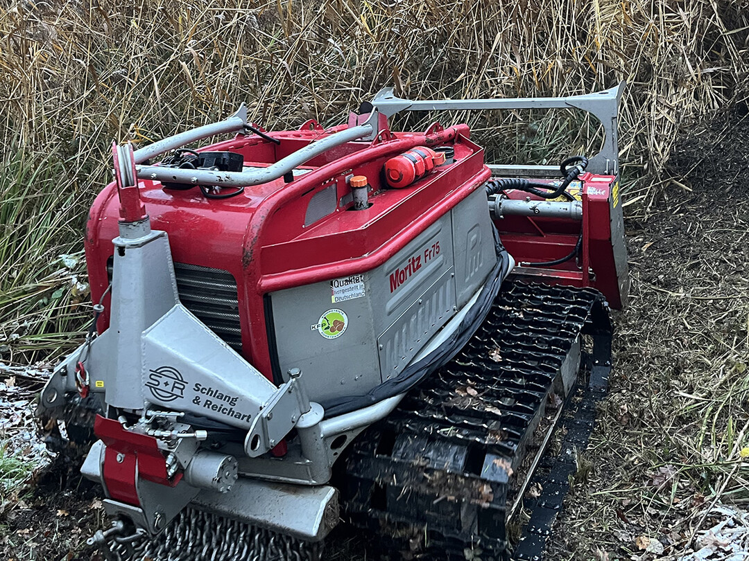 Der ferngesteuerte Geräteträger Moritz überzeugt in der Landschaftspflege durch hohe Flächenleistung und extreme Geländegängigkeit – vom Steilhang bis zum Moor. Dank seines sehr niedrigen Bodendrucks ist selbst der Einsatz in sensiblen Bereichen wie Mooren möglich – bodenschonend, präzise und wirtschaftlich.