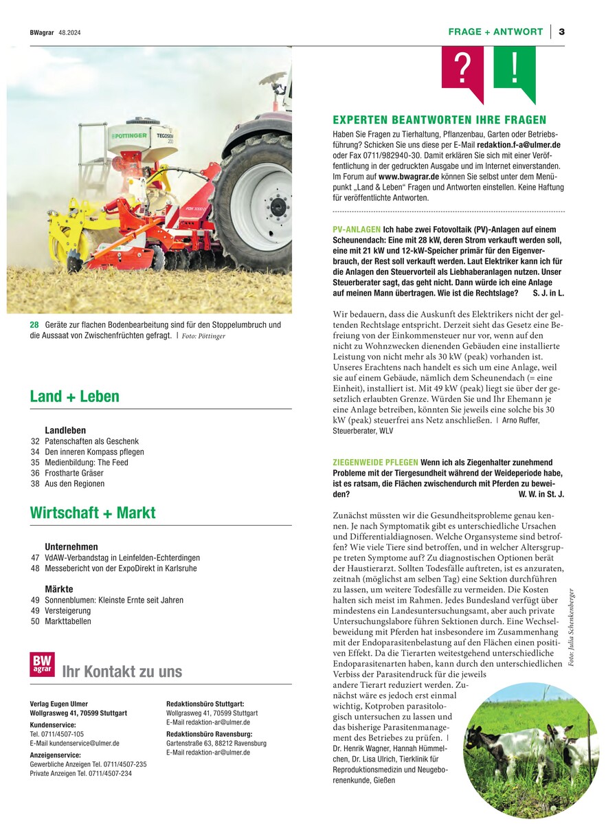 Gesamtes Inhaltsverzeichnis anzeigenBWagrar Schwäbischer Bauer 48/2024