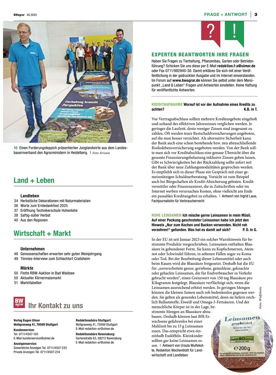 Gesamtes Inhaltsverzeichnis anzeigenBWagrar Schwäbischer Bauer 40/2025