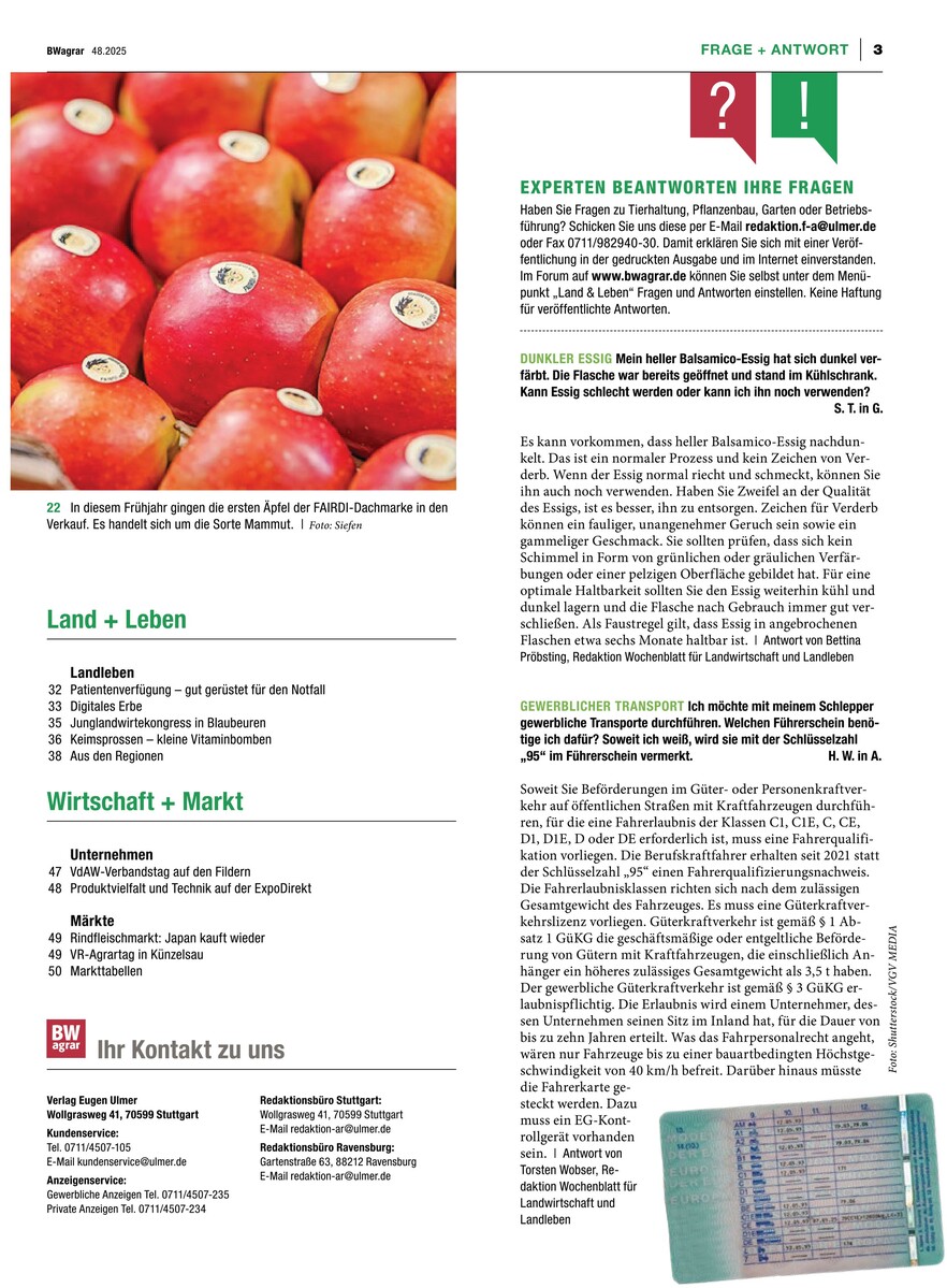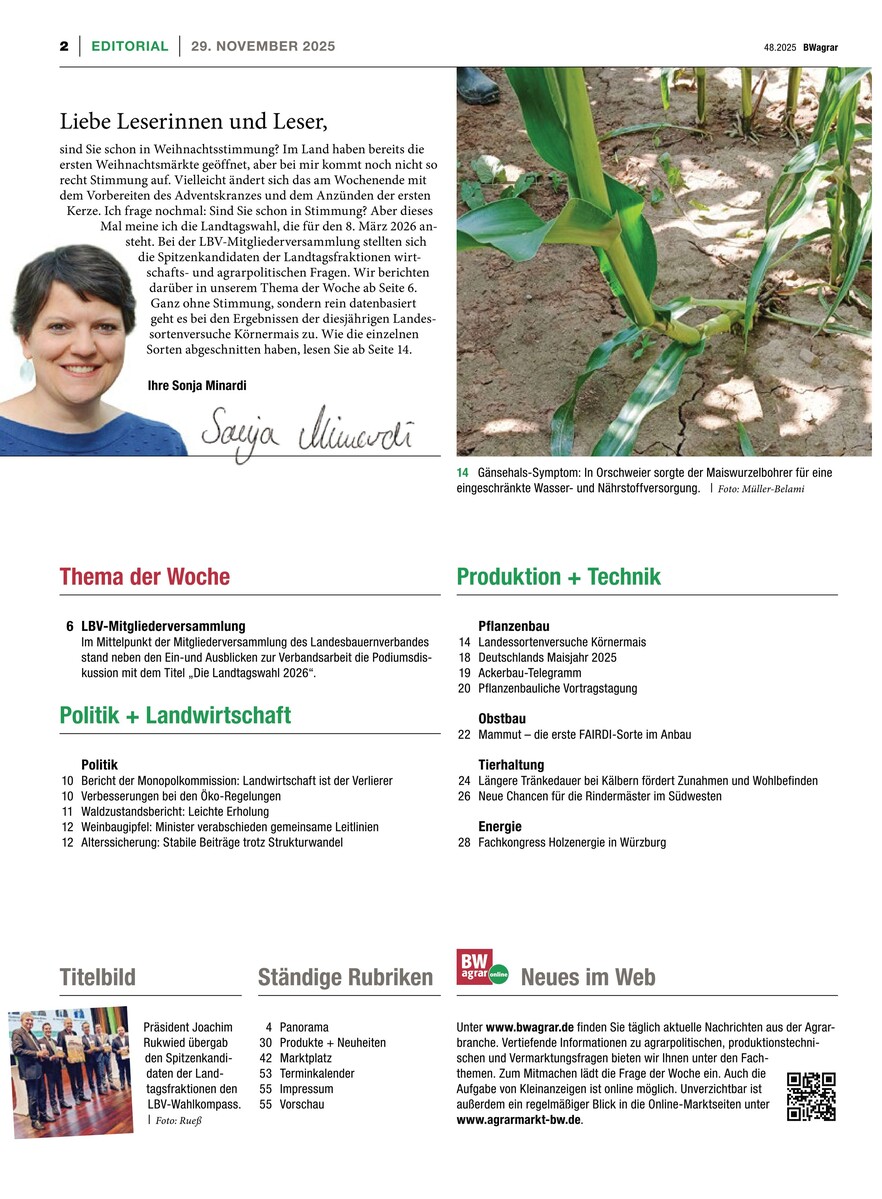 Gesamtes Inhaltsverzeichnis anzeigenBWagrar Schwäbischer Bauer 48/2025