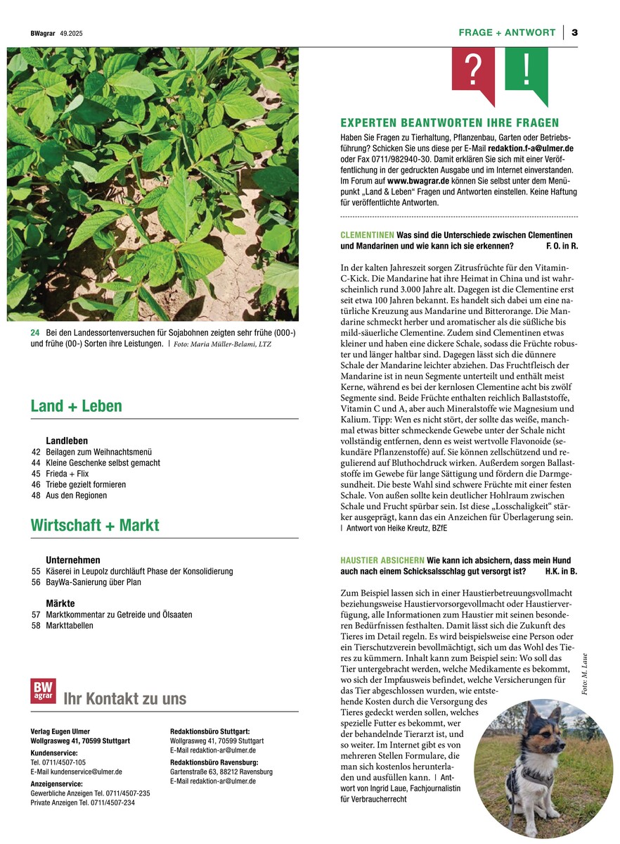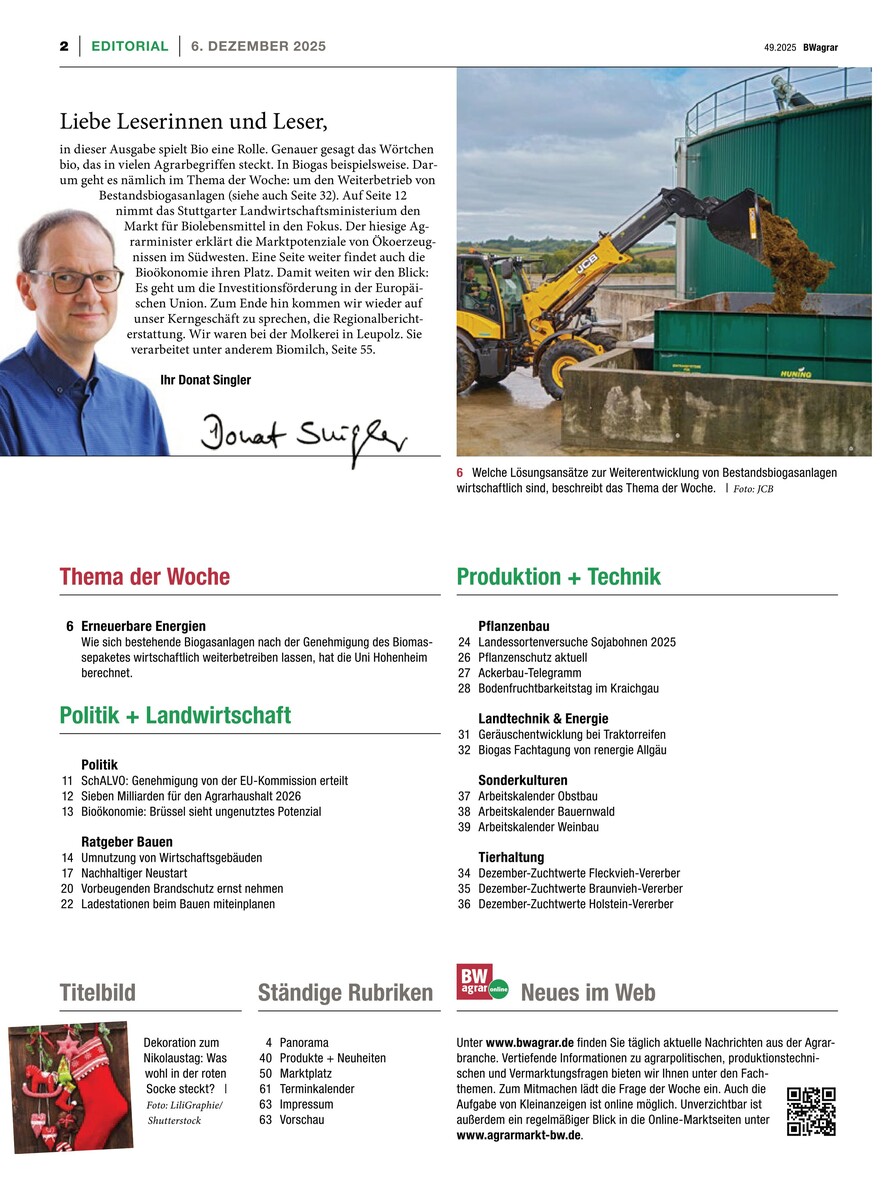Gesamtes Inhaltsverzeichnis anzeigenBWagrar Schwäbischer Bauer 49/2025