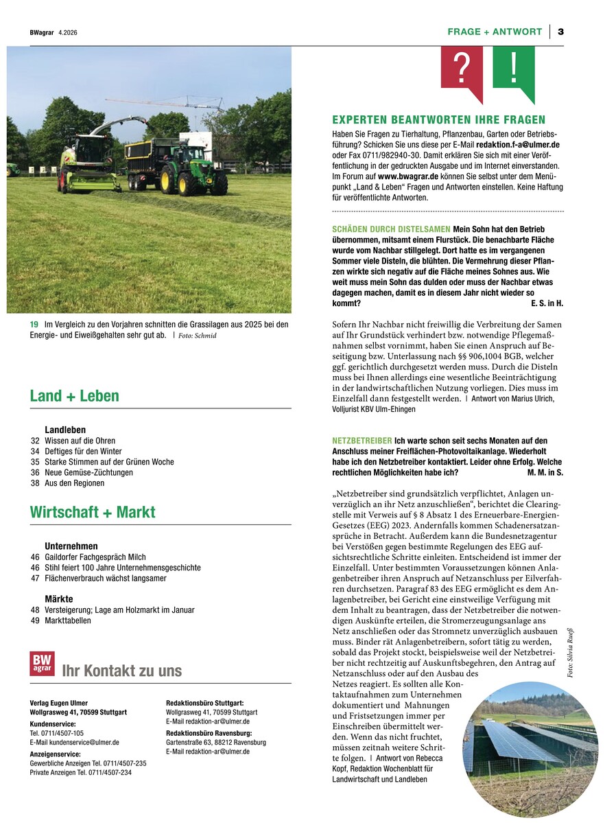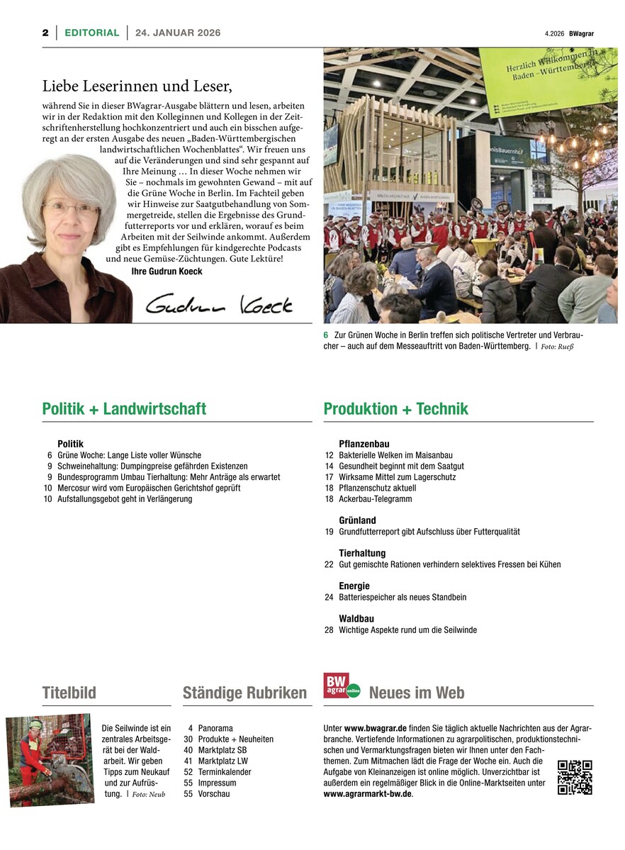 Gesamtes Inhaltsverzeichnis anzeigenBWagrar Schwäbischer Bauer 04/2026
