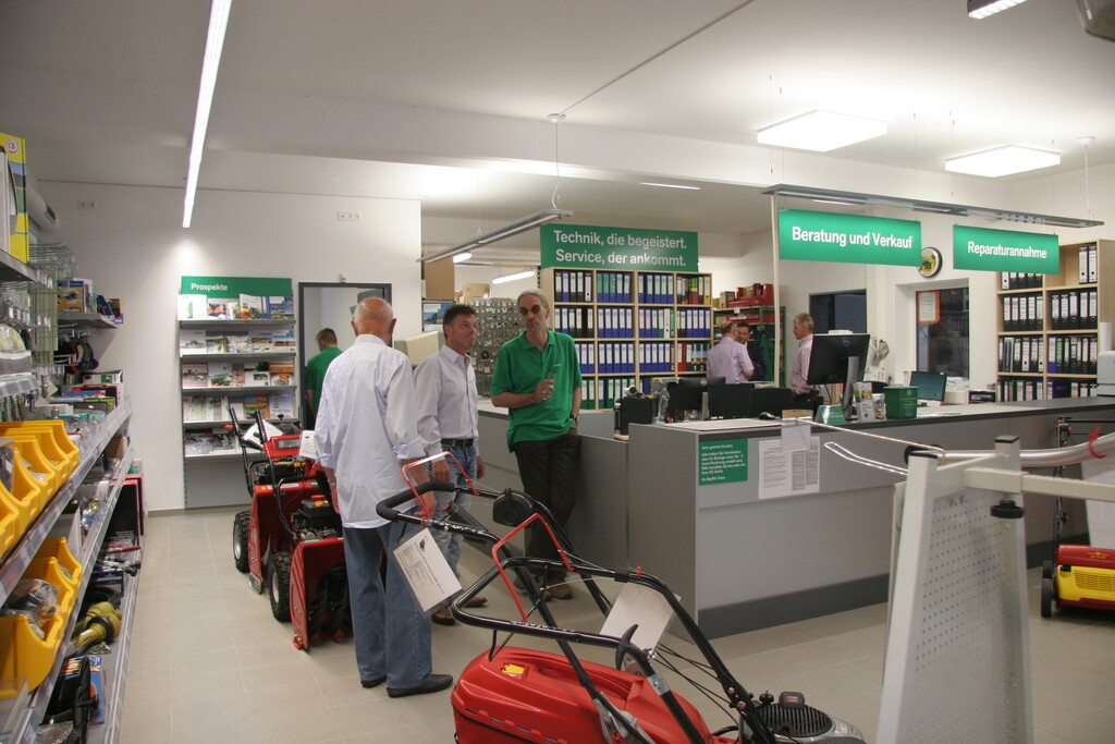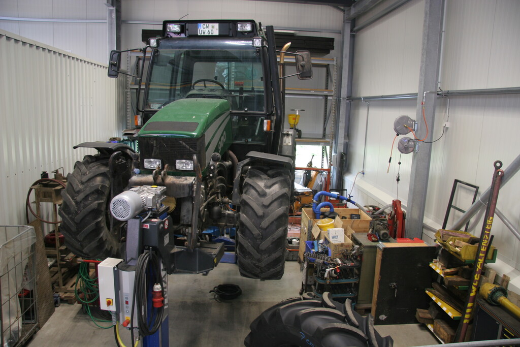 Rund 1 Million Euro hat die BayWa in die Neubauten, in Modernisierungs- und Erweiterungsmaßnahmen am Standort Altensteig gesteckt. In sieben Monaten Bauzeit sind eine deutlich größere Werkstätte, Verkaufs- und Büroräume sowie Sozialräume für die Mitarbeiter entstanden. Die bestehende Werkstätte musste dem Neubau weichen. In der neuen Werkstätte mit 425 Quadratmetern Grundfläche stehen bis zu zehn Montageplätze zur Verfügung. Bis zu acht Mitarbeiter in der Werkstätte und den Büros sorgen für einen reibungslosen Ablauf und zur Erntezeit steht den Landwirten zusätzlich ein mobiler 24-Stunden-Notdienst zur Verfügung.