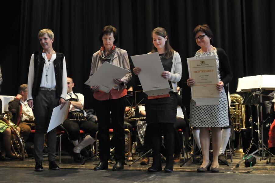 Bei den Gratulanten reihten sich zahlreiche Grußwort-Redner ein. So auch Gerhard Glaser, Vizepräsident im Landesbauernverband. Er empfahl den Jungmeisterinnen und -meistern: „Pflegt und erhaltet Eure Werte und Ziele“. Glaser warb, wie auch die stellvertretende Landfrauenpräsidentin, Waltraud Allgaier, und die Erste Landesbeamtin im Kreis Ravensburg, Eva-Maria Meschenmoser, bei den jungen Meisterinnen und Meistern für ein Engagement im kommunalen oder berufsständischen Ehrenamt.