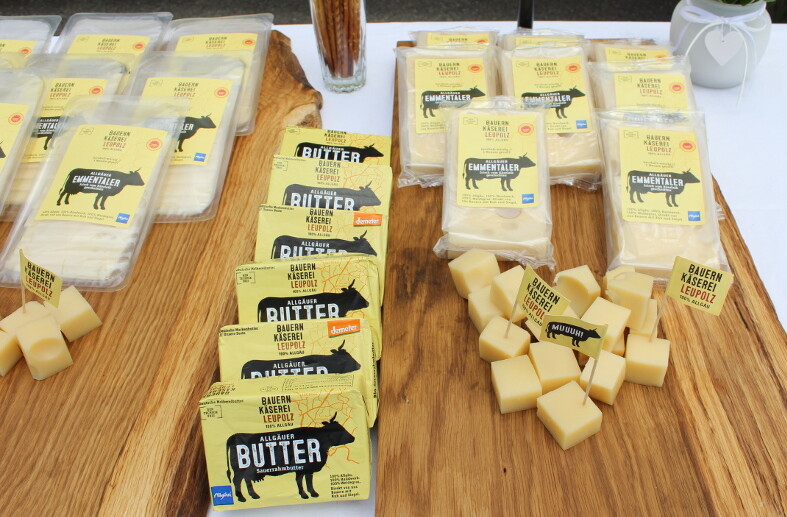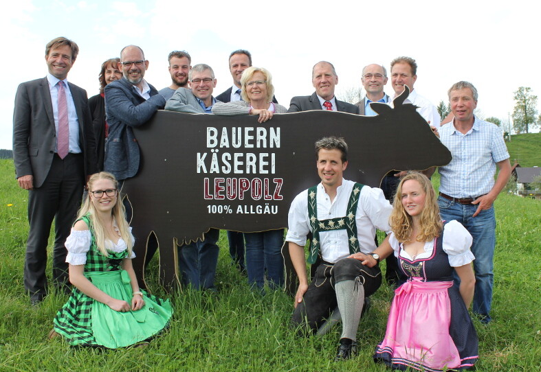Mit auf den Plakaten und Flyern ist neben dem Siegel Gentechnik frei, das Geografische Herkunftszeichen der EU, das europäische Biozeichen sowie der blaue Allgäuwürfel abgebildet. Letzterer genieße bereits einen hohen Bekanntheitsgrad. „Eine starke Marke, die gerade im Tourismusbereich heute schon weit über das Allgäu hinaus bekannt ist,“ meinte Oberbürgermeister Michael Lang aus Wangen im Allgäu. Er gratulierte der Käserei zu ihrem neuen Auftritt. Jetzt geht es darum, den Vertrieb nach und nach auszubauen, meinte Michael Welte. Unterstützung dabei gebe es von der Wangener Frischdienst GmbH. Welte stellte auch klar, dass die Käserei über die neue Marke nur einen Teil ihrer gesamten Milch verkaufen kann. „Unser Fernziel sind 20 Prozent der Milchmenge“, so Welte. Die Kosten für die Gestaltung der neuen Marke bezifferte Welte auf rund 100.000 Euro. Ideen und Entwürfe kamen von der Agentur mërz punkt aus München, die Ausführung und Umsetzung der neuen Schilder, Fahnen und vielem mehr realisierte die Kommata Werbeagentur aus Fronhofen.