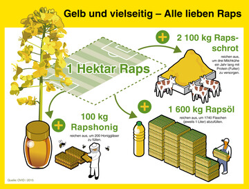 200 Honiggläser, 1740 Flaschen Speiseöl und Jahresfutter für drei Milchkühe – das leistet ein Hektar Raps. Die Rapsblüte startet durch und der Verband der Ölsaatenverarbeitenden Industrie in Deutschland (Ovid) lobt einen Fotowettbewerb aus.