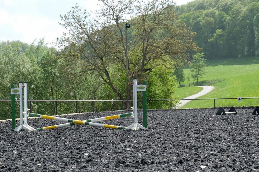 Soweit die konzeptionellen Grundlagen, die Umsetzung sieht in jedem Stall anders aus, wie Carola Brandt von der Firma Schauer bei der Besichtigung auf dem Waldenhof erklärt. Bei Schauer finde immer eine individuelle Planung statt, die die Gegebenheit vor Ort genauso berücksichtigt wie die Wünsche und Vorstellungen des Stallbesitzers. Klar ist, dass genügend Platz vorhanden sein muss. Als Mindestflächen für erste Überlegungen nennt die Verkaufsleiterin Pferdehaltung einen Bedarf von 10 Quadratmeter Liegefläche und 100 Quadratmeter Auslauffläche je Pferd. Wichtiger als die absoluten Werte sind allerdings die Gestaltung der Wege und Räume. So ist darauf zu achten, dass keine spitzen Winkel entstehen und die Tiere stets genügend Platz zum Ausweichen haben.