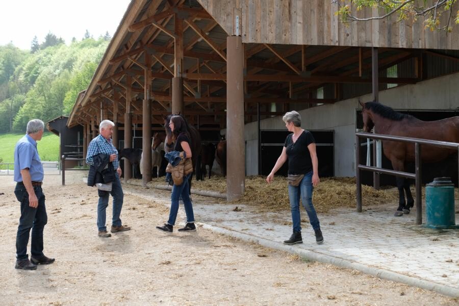 Der Bewegungsstall der Familie Casper auf dem Waldenhof bei Ottenbach im Kreis Göppingen ist seit einem halben Jahr in Betrieb. Ende April hat Thomas Casper die Fachgruppe pferdehaltender Betriebe im Landesbauernverband zu einer Besichtigung eingeladen.