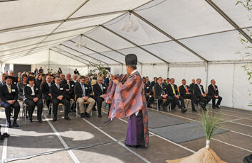 „Yokitokorono umashitokoro“ (Der beste Platz, um ein neues Gebäude zu errichten) – mit diesen Worten weihte der japanische Shinto Priester Matsumoto am 10. März den Boden auf dem Firmengelände der Milei. Auf einer Fläche von rund 1,5 Hektar errichtet das Allgäuer Unternehmen eine neue Produktion.