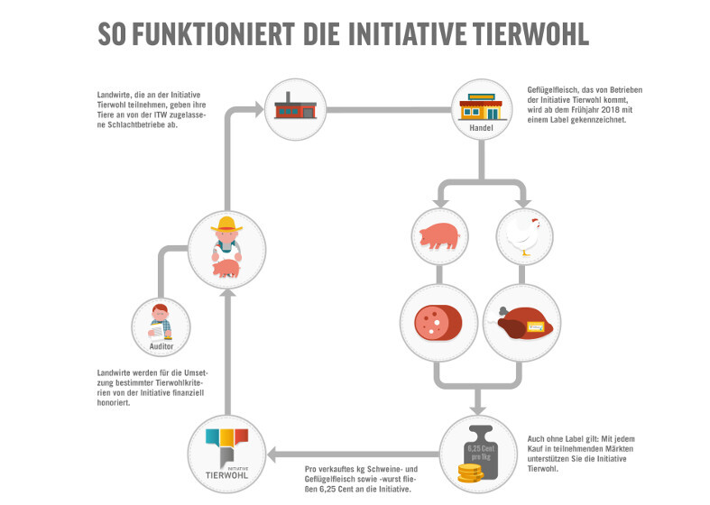- Zweitens prüft die Initiative Tierwohl, Beratungs- und Weiterbildungsangebote für mehr Tierwohl für die teilnehmenden Landwirte zu schaffen.