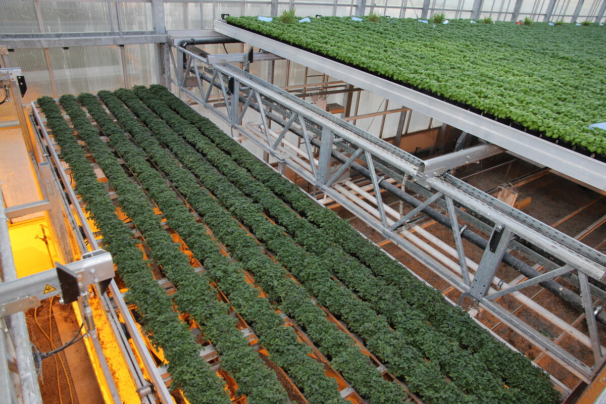 2015 wurde die bislang größte Investition getätigt und ein für die Doppelstockproduktion ausgelegtes Gewächshaus mit 7.300 m² Grundfläche gebaut, die effektive Produktionsfläche beträgt 13.000 m². Am 2. Juli wurde die erste Stütze gesetzt, am 15. November erstmals ausgesät und zu Weihnachten 2015 erstmals geerntet. „Das war eine echte Hardcorebaustelle!" Auch in diesem neuen Betriebsteil sorgt eine leistungsstarke EDV für einen reibungslosen Ablauf. Die Keimraumbelegung wird hier allerdings nach visueller Kontrolle des jeweiligen Keimstadiums entschieden. Kulturtechnisch bislang größte Herausforderung war der Pflanzenschutz – vor einiger Zeit waren Blattläuse kaum in den Griff zu bekommen, weil sich die Tiere aus der oberen Etage nach unten fallen ließen. Mittlerweile kümmern sich in der Gärtnerei zwei Mitarbeiter ausschließlich um die alles entscheidende Pflanzengesundheit.