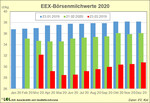 Am Terminmarkt an der EEX in Leipzig sind sowohl die Butter- und insbesondere die Magermilchkontrakte deutlich eingebrochen. Umgerechnet auf Erzeugerpreise hat sich das Niveau für 2020 seit Januar von optimistischen 37 bis 38 ct/kg auf unter 29 ct/kg im Frühsommer verringert. Die Erzeugerpreise im Land lagen im Februar mit 34,9 ct/kg um 0,71 ct/kg unter Vorjahr.