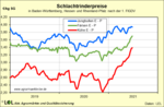 Grund dafür ist das anhaltend knappe Angebot an Schlachtrindern und die gute Nachfrage sowohl im In- als auch im Ausland, teilt die Landesanstalt für die Entwicklung der Landwirtschaft (LEL) in Schwäbisch Gmünd mit. Auch die Schlachtunternehmen stehen bei der Aus-lastung ihrer Schlachtkapazitäten in einem scharfen Wett-bewerb um die Schlachttiere, heißt es im LEL-Marktblick für die Kalenderwoche 26/2021. Mit den europaweiten Lockerungen der Corona-Restriktionen bestand in den letzten Wochen ein erheblicher Auffüllbedarf in der Gastronomie und in den Exportländern Frankreich, Spanien und Italien.