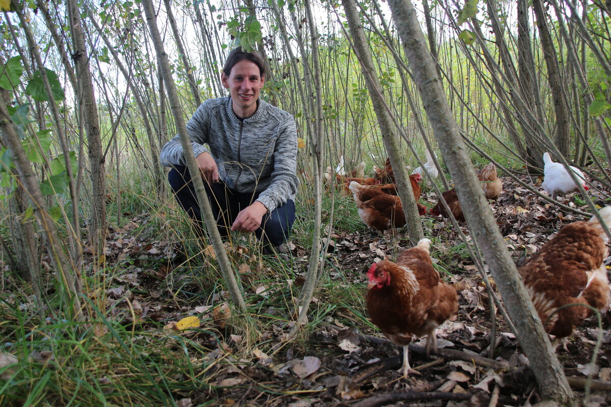 Der Ertrag ist so heterogen wie die Fläche und wird an den Maschinenring verkauft, der die Bäume vor Ort häckselt und anschließend abtransportiert. „Der direkte wirtschaftliche Nutzen ist bei uns eher gering, weil die Handernte ziemlich aufwendig ist“, erklärt Wörner. „Ich sehe aber die positiven Effekte für die Hühner als indirekten wirtschaftlichen Gewinn.“