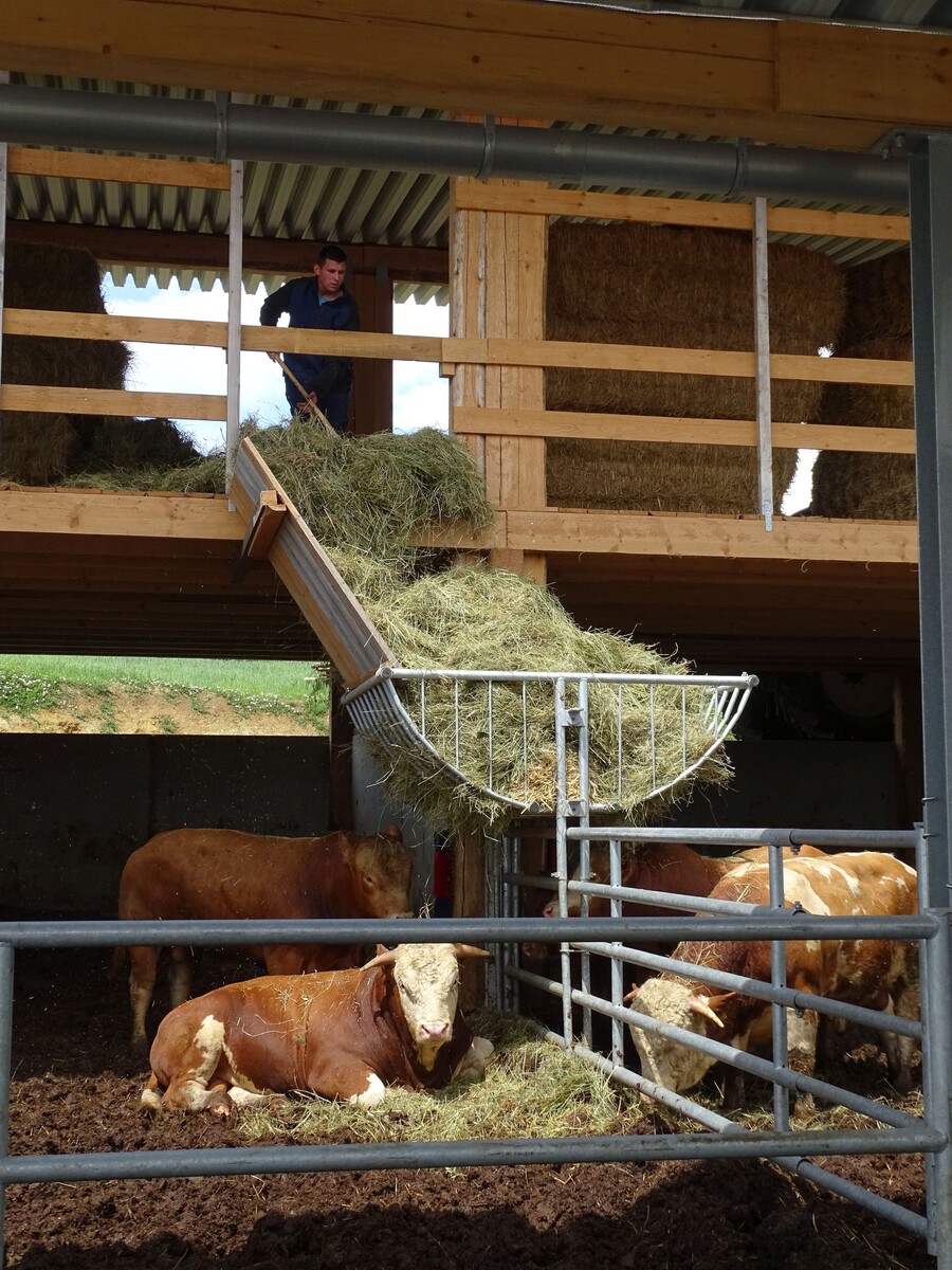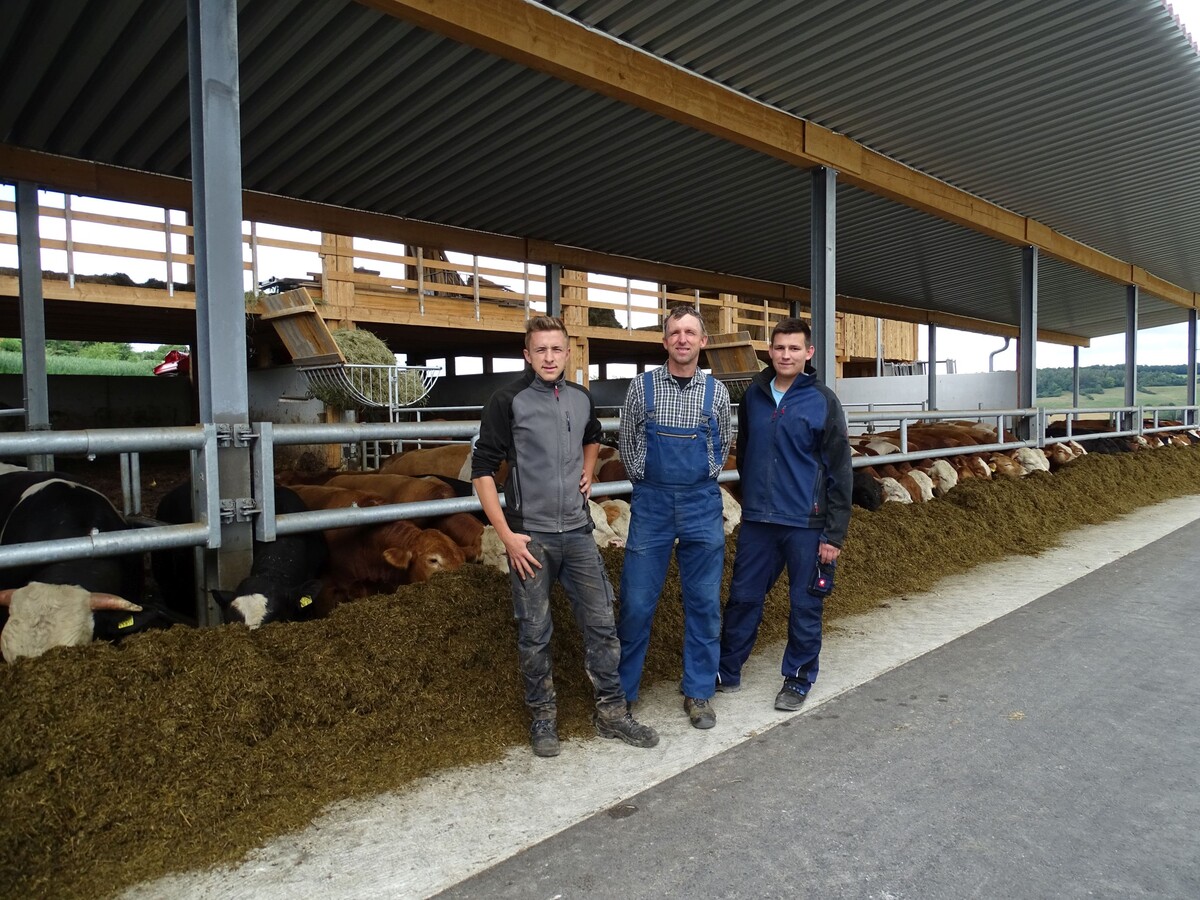 Während des ersten Corona-Lockdowns nahm das Ehepaar Scheidel gemeinsam mit seinen fünf Kindern ein weiteres Projekt in Angriff, um alle Produkte ihres Hofes besser vermarkten zu können: Die Bullenkälber, die bislang nach dem Absetzen von der Mutterkuh verkauft wurden, werden nun im neu gebauten Offenstall selbst gemästet. Ebenfalls nach biologischen Richtlinien, versteht sich. Zusätzlich zur eigenen Nachzucht werden auch Tiere von anderen Biobetrieben aus der Region übernommen, sodass rund 100 Mastrinder auf dem Hof der Scheidels täglich versorgt werden müssen. Die Vermarktung erfolgt über die Bäuerliche Erzeugergemeinschaft Schwäbisch-Hall.