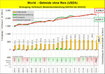 Beim Blick auf die Welt-Getreidebilanzen der letzten 20 Jahre fällt auf, dass wir inzwischen für die Versorgung der Menschheit rund 2.250 Mio.t Getreide im Jahr benötigen. 50 Prozent mehr als zu Beginn des Jahrtausends. Nach Jahren des Überschusses von 2011/12 bis 2017/2018 sind wir wieder in einer Phase defizitärer Bilanzen angekommen. Im Jahr 2022/2023 betrug das weltweite Defizit 19,2 Prozent.