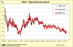 Auch von Seiten des Rohöls gehen aktuell keine wirklich zählbaren Impulse aus. Die Kurse bewegen sich seit Wochen in einem Band zwischen 70 und 78 USD je Barrel eher seitwärts. Etwas für Bewegung hat die Nachricht über niedrige Palmölbestände in Malaysia gesorgt. Das könnte den Pflanzenölen Unterstützung bieten, wovon auch der Rohstoff Raps etwas profitieren könnte.In Summe kann man festhalten. Derzeit gibt es kaum Anzeichen für eine wirkliche Wende. Der Rapsmarkt wird als ruhig beschrieben. Bei kleinen Preisen besteht nur geringe Abgabebereitschaft. Und die Saison 2023/24 befindet sich bereits in der zweiten Hälfte. Als Erzeugerpreise werden derzeit (KW 7) im Süden Werte um 38,50 Euro/dt genannt, die Börse im Mannheim notiert zertifizierte Ware (Feb./März) bei 410 bis 416 Euro/t.