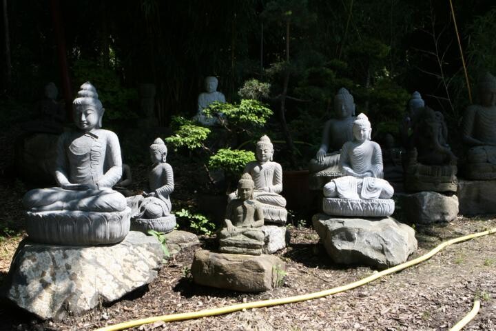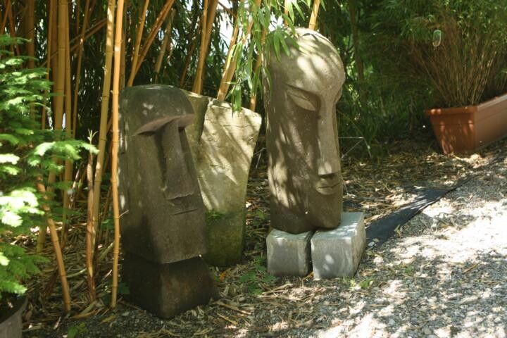 Zu einer Oase der Ruhe wird die Hofstätter Mühle durch die Kombination mit den unterschiedlichsten Kunstobjekten. Passend zum Bambus sind dies in der Mehrzahl asiatische Steinfiguren, doch auch manch witzige Nachbildung heimischer Tiere findet sich darunter. Im japanischen Gartenteil, dessen monotones Grün vorwiegend durch farbige Gräser oder Sträucher unterbrochen wird, laden Sitzecken zum Verweilen ein. Ein besonderer Lichteinfall in verwunschene Ecken sorgt dafür, dass man sich hin und wieder in eine andere Welt versetzt fühlt.