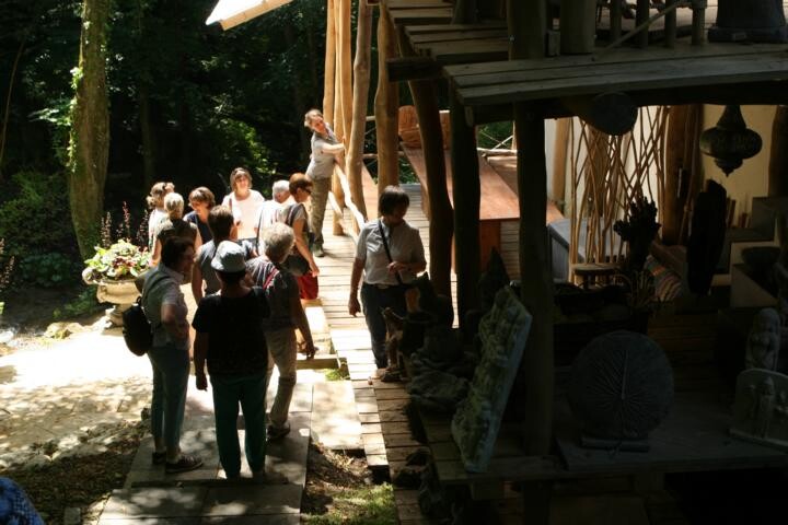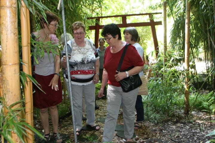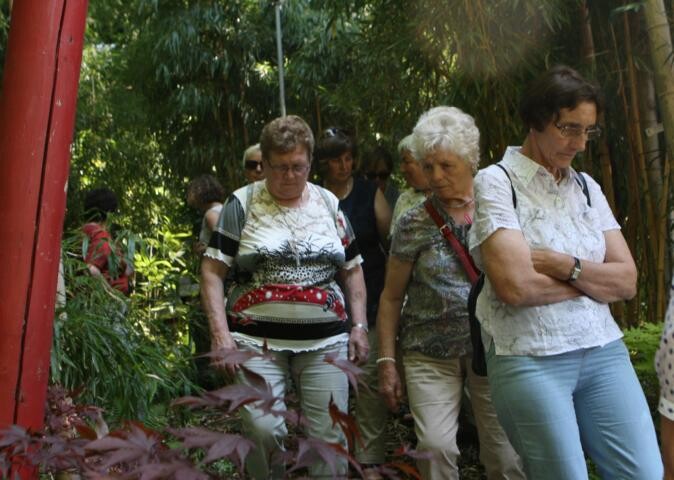 In eine andere Welt versetzt sahen sich die Gartenfreunde bei der zweiten Station: der Hofstätter Mühle in Heiligenberg. In der dortigen Gärtnerei hat sich Familie Egenolf mit ihrem Team neben der Pflanzenanzucht für Dachbegrünungen auf die Produktion von Bambuspflanzen spezialisiert. Den mit zu den am schnellsten wachsenden Pflanzen der Erde zählende Bambus gibt es in den unterschiedlichsten Sorten und Varietäten mit Wuchshöhen von 30 Zentimeter bis über 30 Meter. Nicht ganz so hoch wird er unter den Klimabedingungen in Mitteleuropa. Was den besonderen Reiz der zu den Süßgräsern zählenden Art ausmacht: Er ist ganzjährig grün und lässt sich mit Ahorn oder Buchs zu reizvollen Pflanzarrangements im Garten verbinden. Wer den Bambus wegen seiner Ausläufer fürchtet, kann die Pflanze durch entsprechende Pflanzringe im Zaum halten oder auf ausläuferfreie Sorten ausweichen, die allerdings nicht ganz so hoch werden.