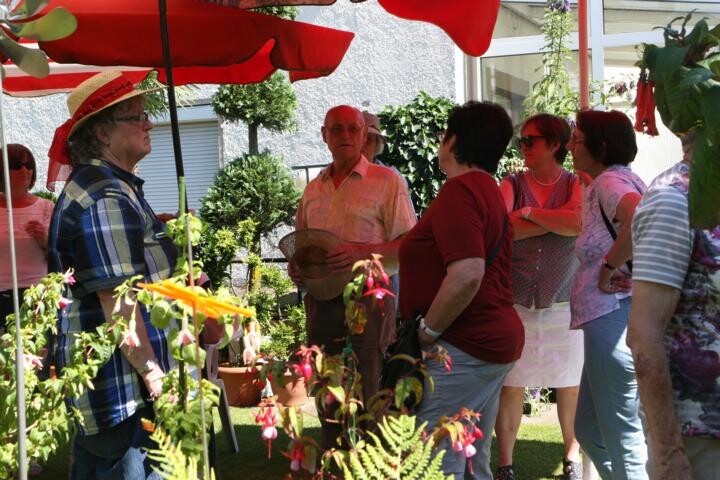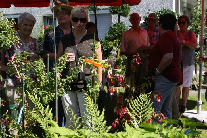 Ein Kontrastangebot dazu hielt Ernst Kessler in Weingarten parat. In seinem Garten hegt und pflegt der rüstige Rentner 380 verschiedene Fuchsienarten. Die unterschiedlichsten Farb- und Formstellungen sind dort zu finden, meist als Stämmchen erzogen. Die älteste Pflanze hat 27 Jahr auf dem Buckel. Sie alle werden nach der Überwinterung Anfang Mai im Topf in der Gartenerde eingegraben. Im Oktober wandern sie dann wieder ins Winterquartier in den Wintergarten. Kaum ein Plätzchen ist dann mehr frei und gießen nur unter erschwerten Bedingungen möglich. Jahr für Jahr topft er seine 380 Sorten um und verwendet dazu halb Kompost, halb Torf. Seine weitere Leidenschaft gehört Schönmalven, Eigen und dem Buchs, den er mit dem richtigen Schnitt in die unterschiedlichsten Formen bringt.