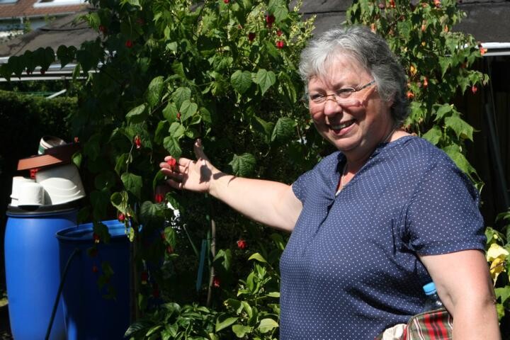 Und noch etwas Besonderes findet sich in Jauchs Garten: Auf fast 200 Meter Länge schlängelt sich eine Modelleisenbahn entlang der Wege, quert Gartenbeete oder durchkreuzt manch Naturidyll. "Mein Garten muss nicht tipptop sauber sein, es darf ruhig mal auch ein Unkraut dazwischen stehen, so wie die Natur eben wächst", gibt die passionierte Gärtnerin ihre Philosophie preis. So richtig zum Wohlfühlgarten aber wird die Anlage durch eine ganze Reihe von Sitzgelegenheiten, ob nun der Strandkorb am Schwimmteich, eine Gartenliege oder einfach ein Tischchen mit ein paar Stühlen. Nur die derzeitige Schnakenplage stört beim ausgiebigen Ruhepäuschen.