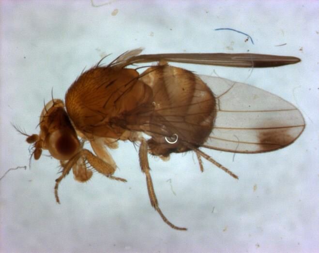 - Bei Verdacht von Traubenbefall kann Fruchtmaterial einige Tage in einem nur mit kleinen Luftlöchern (z.B. sehr dünnmaschiger Vorhangstoff) versehenem Behältnis aufbewahrt und nach wenigen Tagen auf Schlupf der Fliegen untersucht werden (je wärmer es ist, desto schneller die Entwicklung). Die Männchen lassen sich gut an den schwarzen Punkten auf den Flügelspitzen erkennen