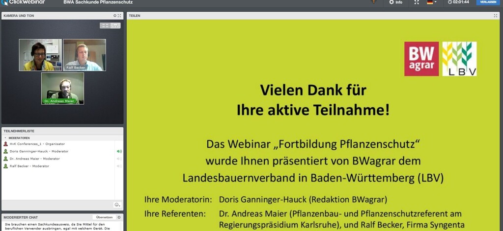 BWagrar: Die Präsentationen und der Link zum Mitschnitt des Online-Seminars werden denjenigen, die ein Zertifikat erhalten, von der BWagrar-Redaktion digital zugestellt.