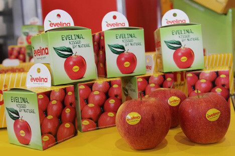 Aktuellen Zahlen zufolge stieg der Gesamtertrag bei Evelina in diesem Jahr auf 6650 Tonnen. Der Anteil der handelsüblichen Größen liegt bei 70 Prozent. In den Ladenregalen zeigt sich Evelina wieder in den leuchtend gelb-roten Verkaufsschalen für vier, sechs und acht Äpfel sowie Apfelsteigen mit 2,2 Kilogramm bis hin zu 7 Kilogramm-Kartons.