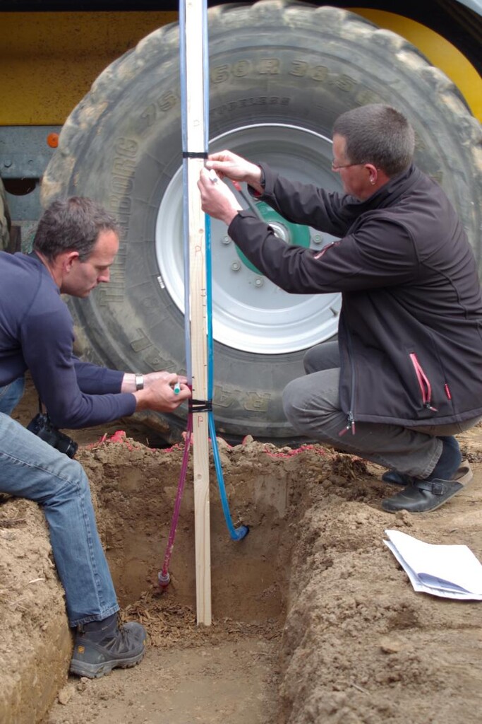 Nach einem Feldeinsatz mit 2,1 bar in den Reifen von Traktor und Güllefass federt der Ackerboden nach Breuers Aussage nicht mehr, die schwere Maschine hat die Struktur verdichtet und der Boden seine Elastizität verloren. Das Verschlauchen von Gülle oder eine Druckregelanlage an Maschinen kann die Situation entspannen, da bei beiden Verfahren weniger Druck auf dem Boden lastet. Bei niedrigerem Reifeninnendruck steigt die Auflagefläche, das Gewicht der Maschine verteilt sich gleichmäßiger im Boden und verdichtet weniger. Die Druckregelanlage passt den Reifeninnendruck an Erdboden (etwa 0,8 bar) und die Straße (rund 1,6 bar) an.