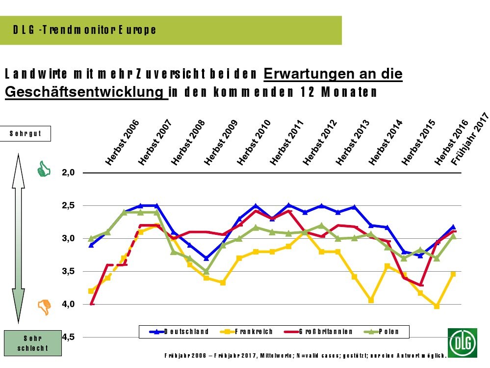 Die geschäftlichen Spannungen aus 2016 lösen sich bei vielen Landwirten zum Frühling etwas. Das zeigen die Ergebnisse des DLG-Trendmonitore Europa 2017.