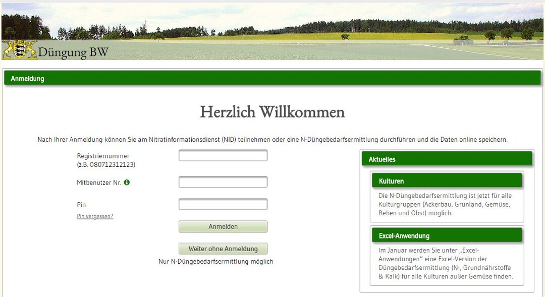 Seit 7. Dezember 2017 ist die N-Düngebedarfsermittlung für Ackerbaukulturen in Baden-Württemberg (www.duengung-bw.de) online gestellt. Damit ist die Ermittlung des N-Düngebedarfs nach den Vorgaben der novellierten Düngeverordnung nun in allen Kulturgruppen (Ackerbau, Grünland, Gemüse, Reben und Obst) möglich.