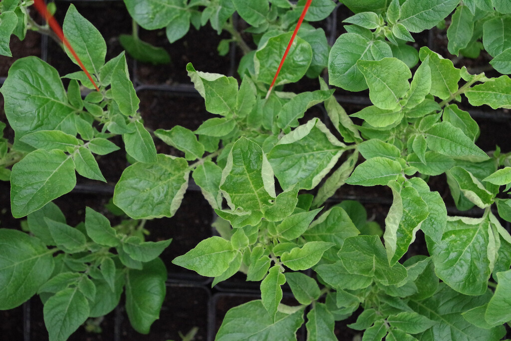 In der Züchtung einer Kartoffelsorte sind etwa 47 Merkmale züchtungsrelevant. Zum Vergleich: Bei Weizen sind es laut Prigge etwa 30. Wie läuft die Krautfäule-Resistenzzüchtung ab? Seit Ende der 1990er wird für neue Sorten eine künstliche Infektion mit Krautfäule-Sporen durchgeführt. Jeder einzelne Genotyp von möglichen neuen Kartoffelsorten-Anwärtern wird mit den Sporen infiziert. Dann wird geschaut, welche Pflanzen nach einer Infektion stehen bleiben: Diese resistenten Sorten könnten entweder selbst Sorten zum Anbau oder Eltern zur Zucht neuer Sorten werden.