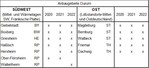 Tabelle 3: Relative Erträge der Landessortenversuche bei Winterhartweizen von 2020 bis 2022; Anbaugebiet Ost