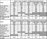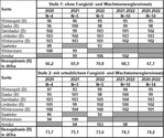 Im Jahr 2021 waren die Unterschiede zwischen beiden Anbaugebieten höher. Mit 3,4 dt/ha (Stufe 1) bzw. 7,4 dt/ha (Stufe 2) bei den Sorten der Bezugsbasis lagen die Erträge im Anbaugebiet Ost diesmal über den Erträgen des Anbaugebietes Südwest. Die Ursachen dafür waren neben der höheren Bestandesdichten auf eine günstigere Wasserversorgung während der Hauptwachstumszeit zwischen Ende April und Juni zurückzuführen.