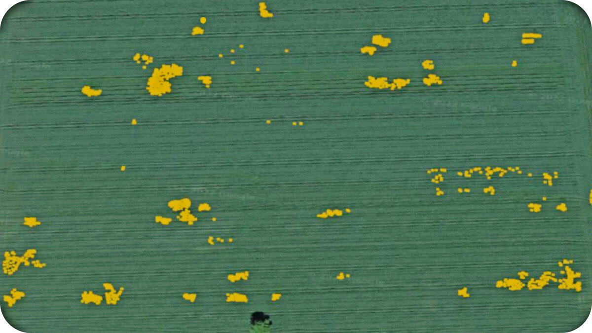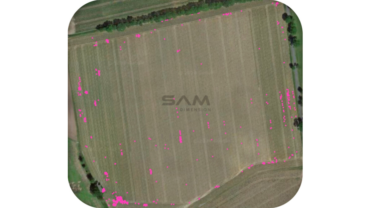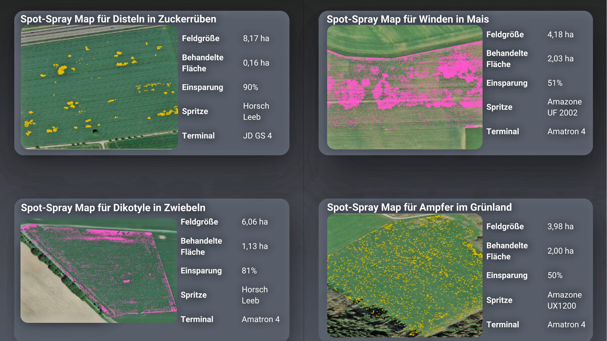 „Praxistaugliche Lösungen bieten wir“, ist Mink überzeugt. „Mit präzisen, KI-basierten Spot-Spray Maps wird der Herbizideinsatz punktgenau gesteuert.“ Appliziert werde also „nur dort, wo tatsächlich Unkraut wächst.“ Das spare Kosten, schone die Umwelt und erhöhe das Ertragspotenzial. In drei Schritten werden dabei Spot-Spray Maps generiert: 1. Kartieren: Das SAM-CAM AI Mapping System bietet luftbildgestützte Unkrautkartierung mit Drohnen und eigenem Kamerasystem. Die leistungsstarke 6-fach Optik ermöglicht dabei Auflösungen im Millimeterbereich und Flächenleistungen bis zu 80 Hektar pro Stunde. Mit Künstlicher Intelligenz (KI; englisch AI, „Artificial Intelligence“) werden Unkräuter identifiziert und lokalisiert und in Spot-Spray Maps übersetzt. 2. Erkennen: Die hochauflösenden Bilder mit 1,6?mm pro Pixel und die integrierte Echtzeit-KI erstellen zügig die Spot-Spray Maps mit ihrer präzisen Unkrauterkennung bereits im Keimblattstadium. Dikotyle Unkräuter und Gräser werden dabei unterschieden und bei Bedarf in separaten Karten ausgegeben. 3. Applizieren: Die Spot-Spray Maps werden inklusive einer Übersichtskarte mit allen Behandlungszonen im terminalkonformen Format für ISOBUS-Feldspritzen geliefert. Die Angabe der zu behandelnden Fläche ermöglicht exaktes Anmischen der benötigten Spritzbrühe. Durch gezielte Applikation werden die Kulturpflanzen weniger gestresst