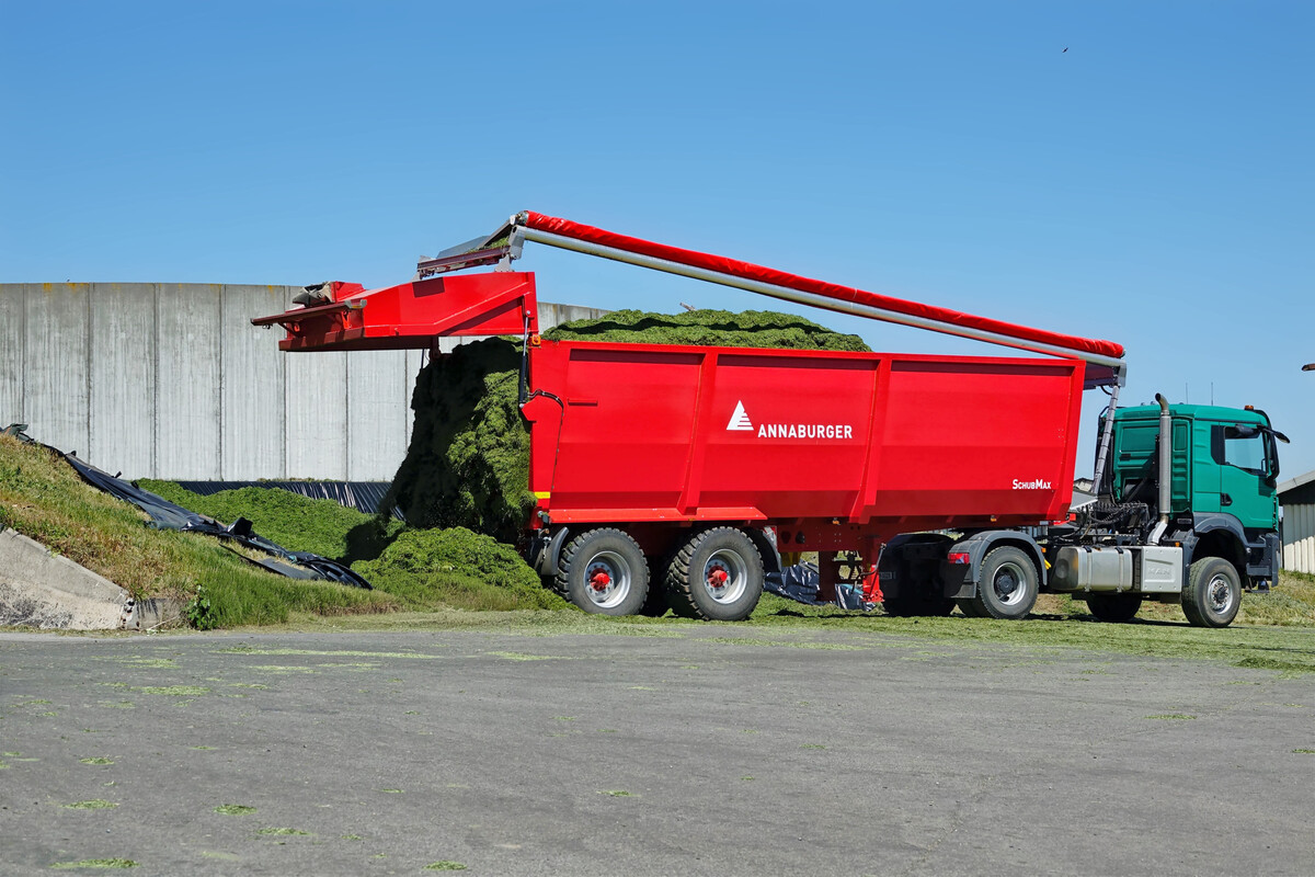 Annaburger erweitert die Abschiebewagen-Baureihe SchubMax Plus um den Sattelauflieger TS 34G.17 – ein Tandem mit 9,2 Meter Laderaumlänge, 2,2 Meter Bordwandhöhe und einem Transportvolumen von maximal 50 Kubikmetern. Das zulässige Gesamtgewicht liegt bei 34 Tonnen, das Einsatzgewicht beträgt 9480 Kilogramm. Die in das Schubschild integrierte Aussteifung der Seitenwände sorgt beim Abschieben für zusätzliche Stabilität am meistbelasteten Punkt, heißt es. Als Höchstgeschwindigkeit sind 65 Kilometer pro Stunde erlaubt, optional ist ein hydraulisch klappbarer Unterfahrschutz verfügbar.